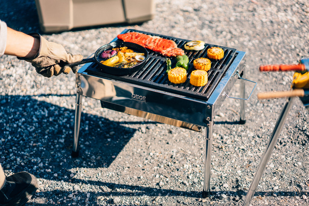 - 網を置いている場所がフレーム状態になっているので『コンパクトピザオーブンⅡ』や『鋳物グリル2937』がジャストフィットします