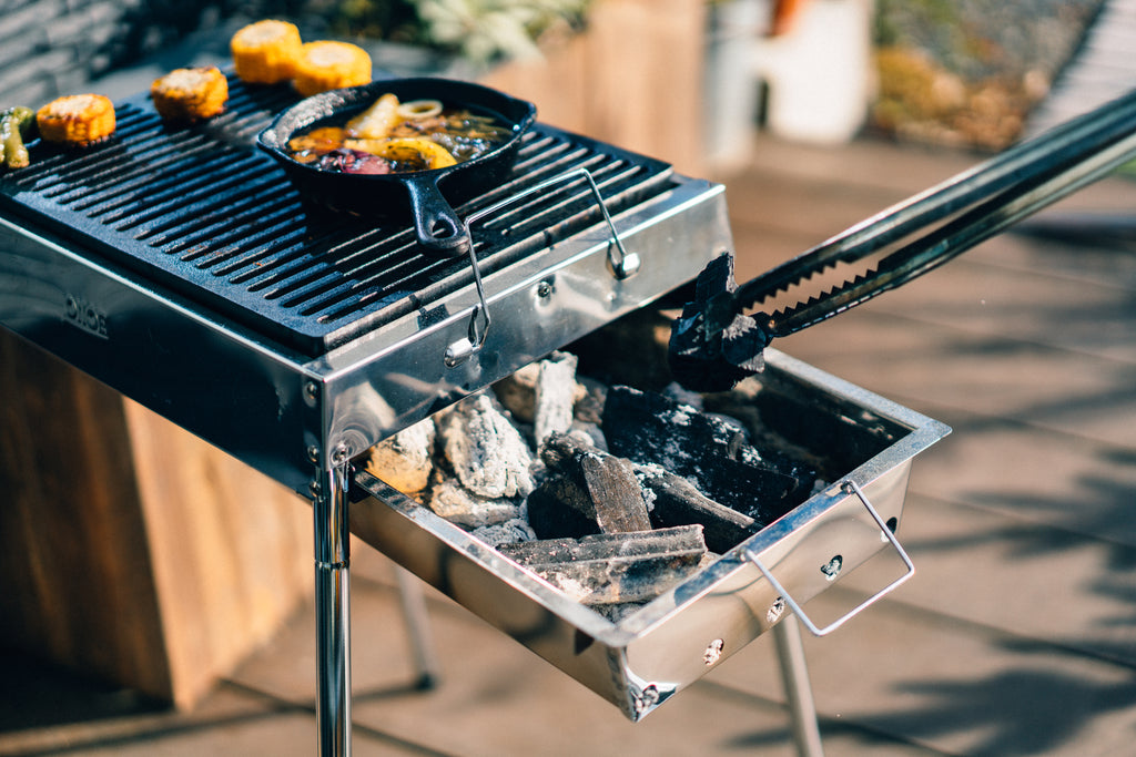 - 炭の追加は炭受けをスライドするだけで簡単