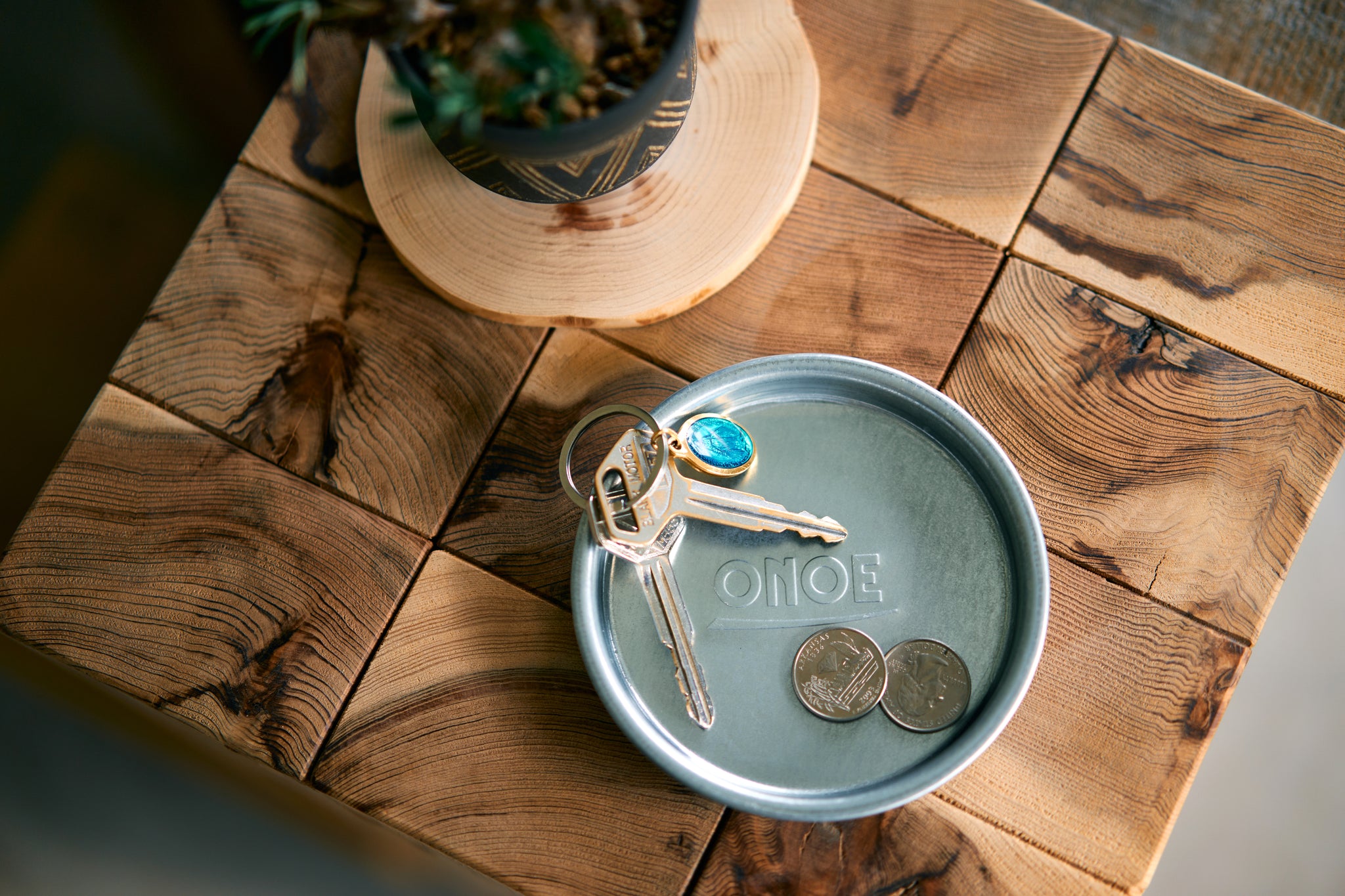 ONOEの刻印が入ったトタンのトレイ